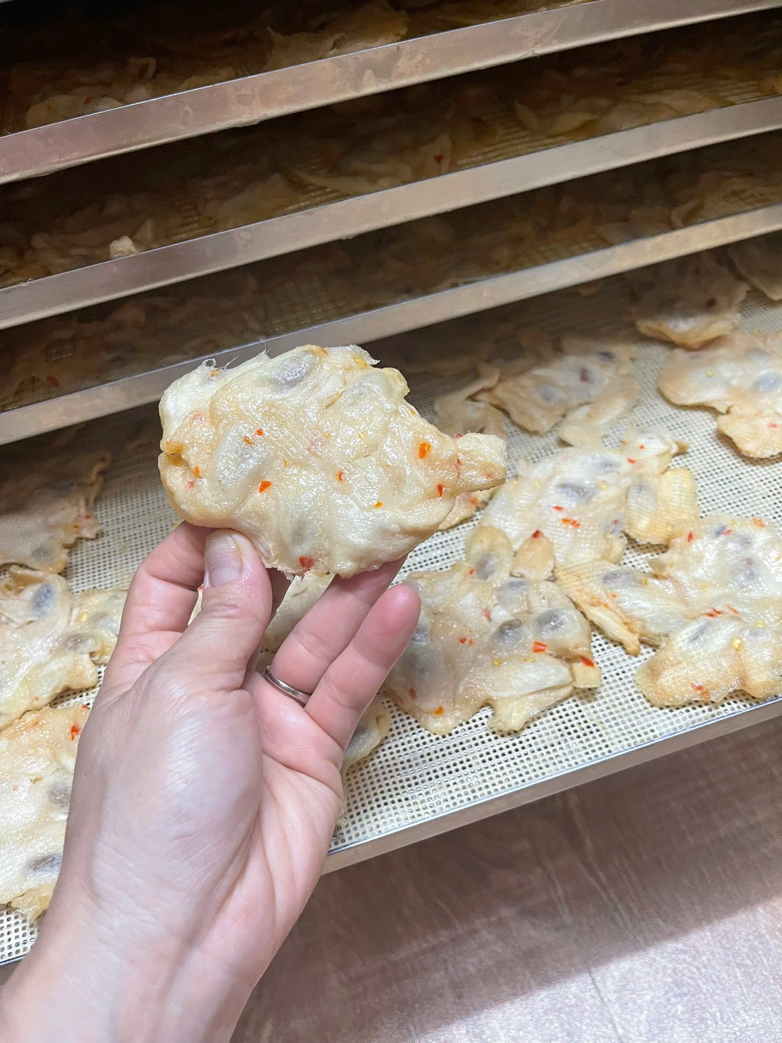 Điều này bắt nguồn từ nguyên nhân bạn cài đặt nhiệt độ quá cao ngay từ ban đầu, khiến bề mặt thực phẩm bị “đóng vỏ”, ngăn cản hơi ẩm bên trong thoát ra. Vì vậy, bạn cần tuân thủ nghiêm ngặt quy trình sấy cũng như công nghệ sấy để đảm bảo chất lượng thực phẩm đạt tiêu chuẩn.
