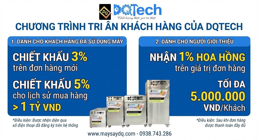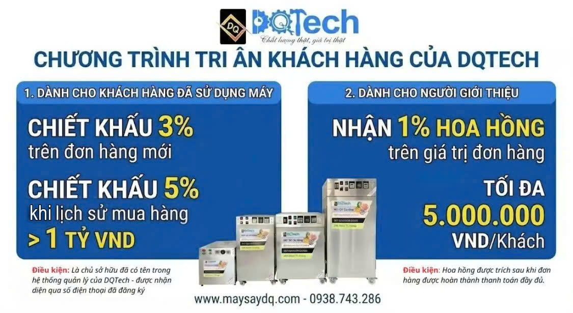Đối tượng: Đã là khách hàng sử dụng máy của DQTech, cộng tác viên (là người đã giới thiệu máy thành công trước đó tối thiểu 1 giao dịch)