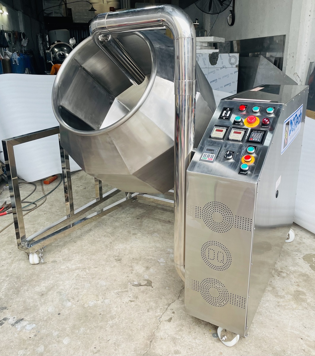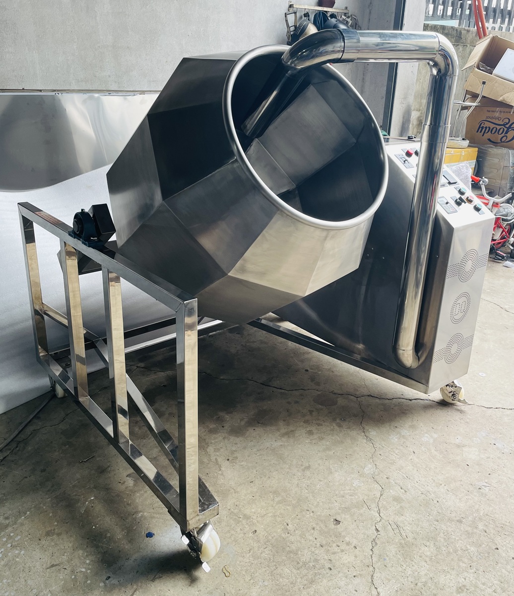 Máy trộn đa giác được sử dụng trong quá trình sản xuất thực phẩm, đặc biệt là trong ngành công nghiệp sản xuất các loại hạt vo viên, tẩm gia vị, bánh tẩm gia vị