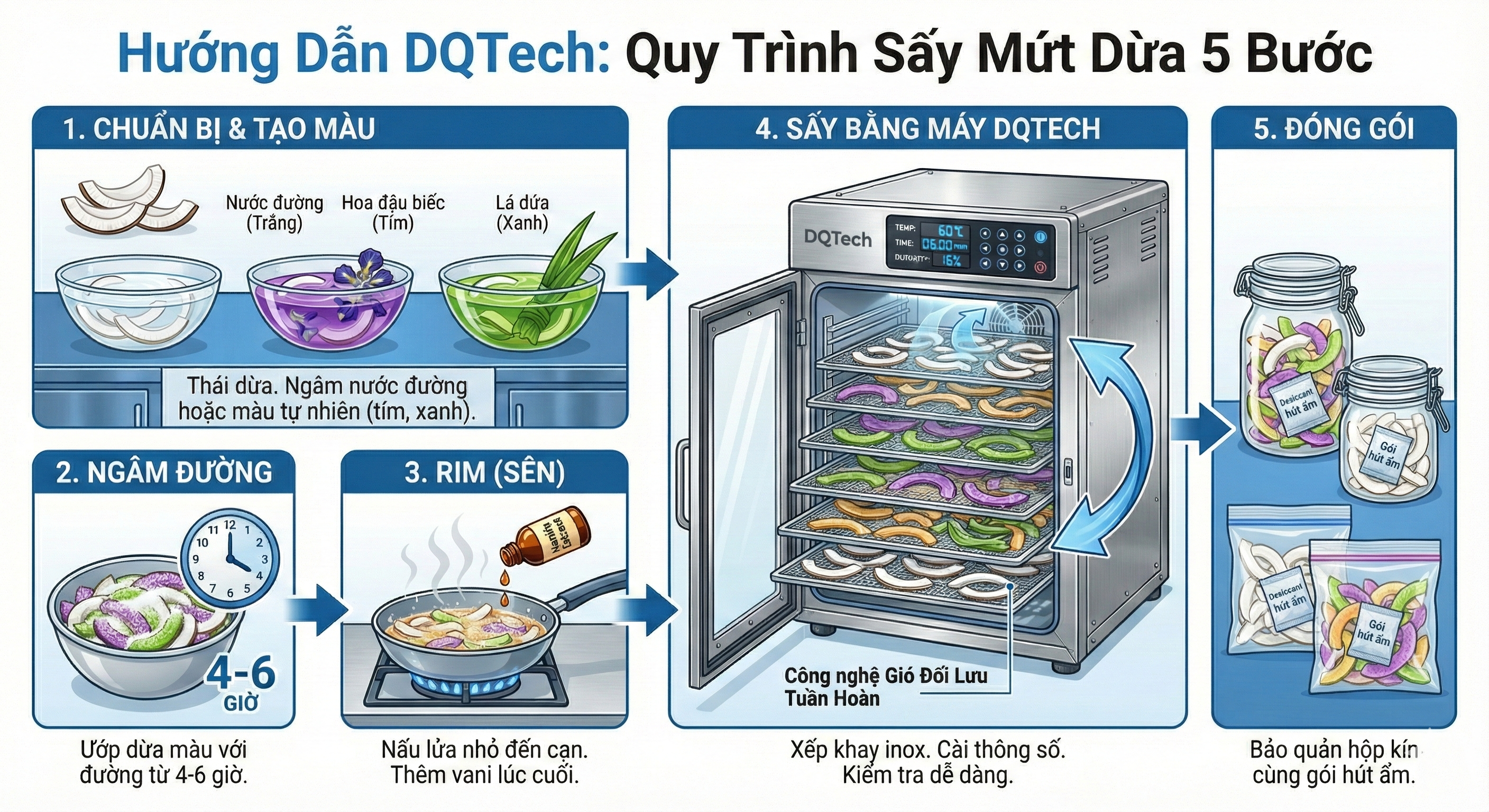 Cách Làm Mứt Dừa Bằng Máy Sấy Thực Phẩm